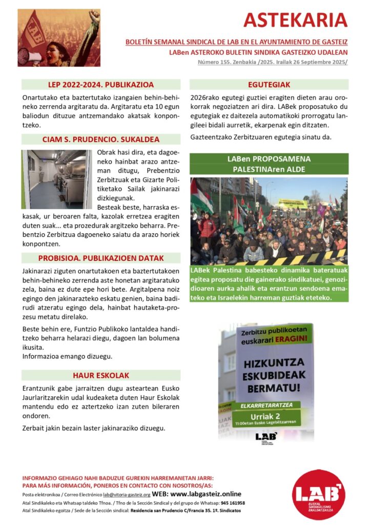 ASTEKARIA Astekaria 155 26 de iraila de 2025 Tags: astekaria Continue Reading Previous Previous post: Astekaria 154Next Next post: Euskarak behar gaitu eta guk euskara behar dugu!