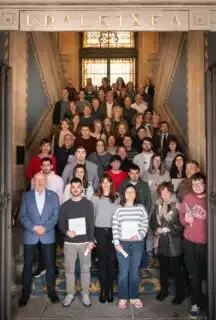 La alcaldesa de Vitoria-Gasteiz, Maider Etxebarria, ha presidido esta mañana el acto de bienvenida a los 16 funcionarios y funcionarias con discapacidad intelectual que se incorporan a la plantilla municipal tras superar la Oferta Pública de Empleo (OPE) desarrollada en 2025. En la recepción han estado acompañados por familiares y representantes de la corporación municipal y del departamento de Función Pública.